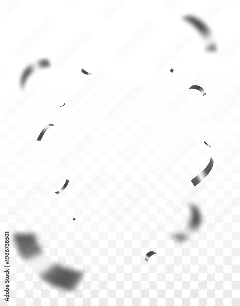 Falling Shiny Silver confetti and ribbon on night background #1966738501