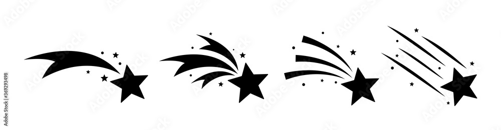Falling stars set icon meteorites or comets. #369293498