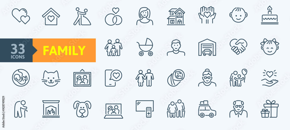 Family icons set in thin line style. Vector collection, outline icon. #1428749829