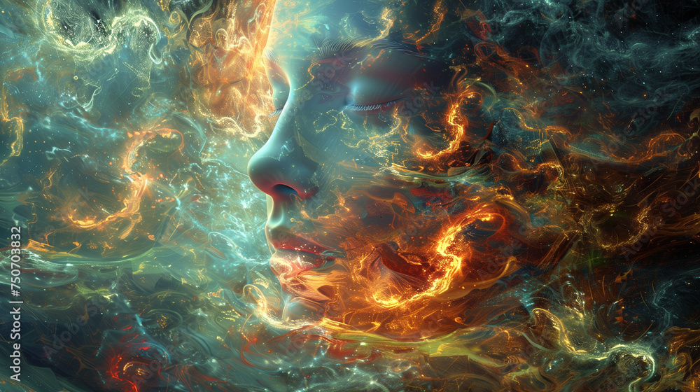 Fantasy portrait of feminine energy in cosmic with vibrant colors. AI generated #750703832