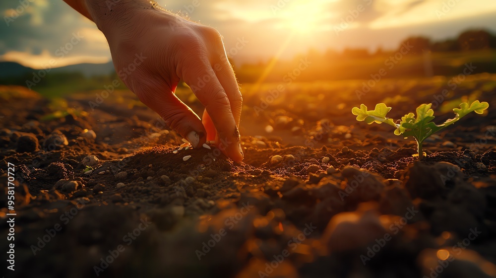 Farmer planting seeds. AI generated image #958170727