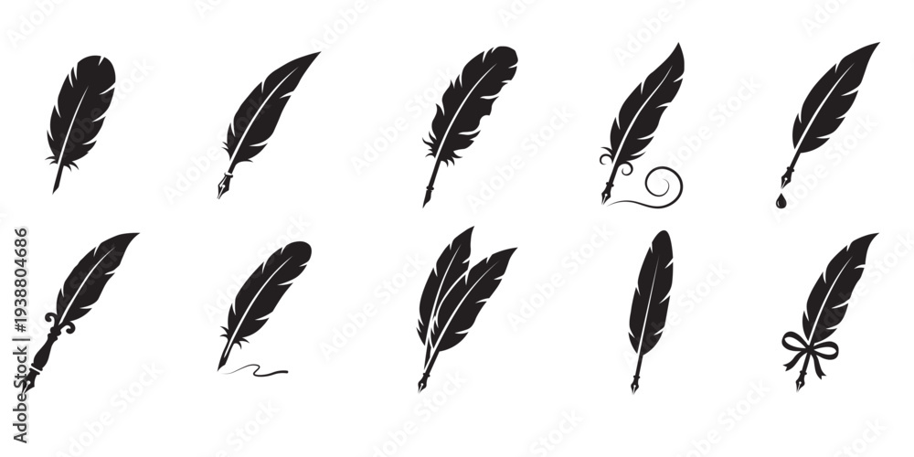 Feather quill pen silhouette set #1938804686