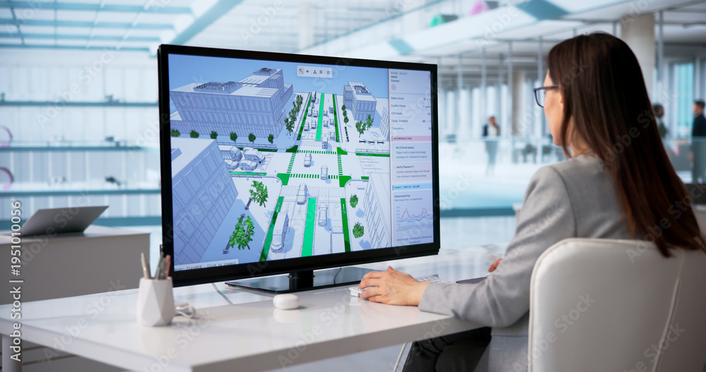 Female Civil Engineer Examines Urban Traffic Patterns #1951010056