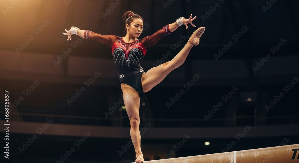 Female gymnast performing on balance beam #1658058317