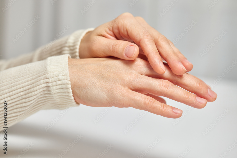 Female hands gently touching each other, symbolizing care and hydration #1941352027