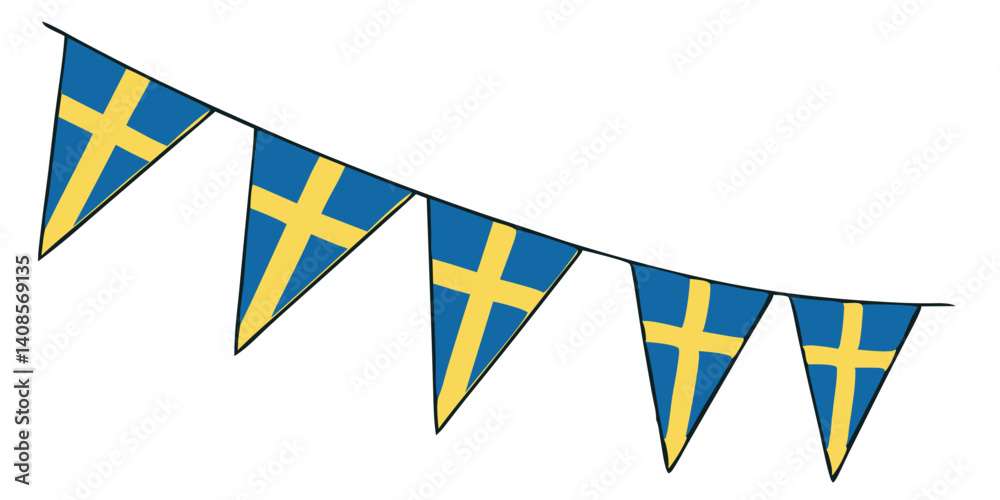 Festive illustration of Swedish party flag bunting – for student celebration, Midsummer or National Day #1408569135
