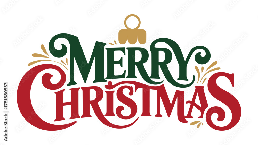 Festive Message: A vibrant Merry Christmas message, crafted in elegant script, spreads holiday cheer. It's adorned with decorative elements, captures the spirit of the season. #1781880553