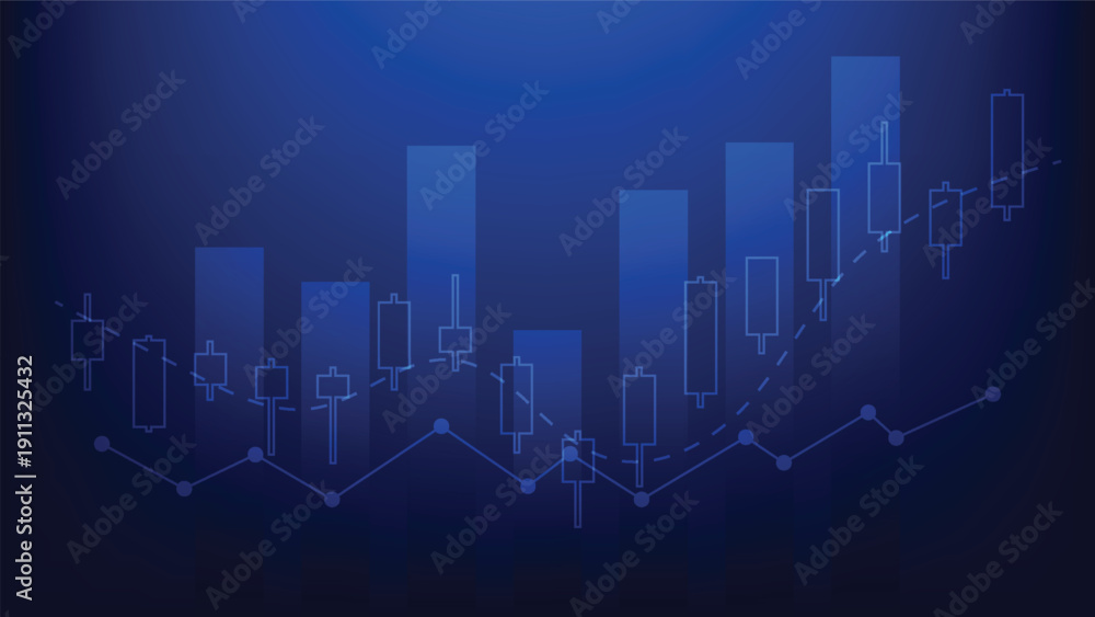 finance and business growth. stock market candlesticks chart with bar graph and indicator on blue background #1911325432