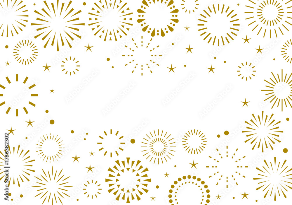 Fireworks background, gold fireworks vector border, Christmas and New year frame #1786382302