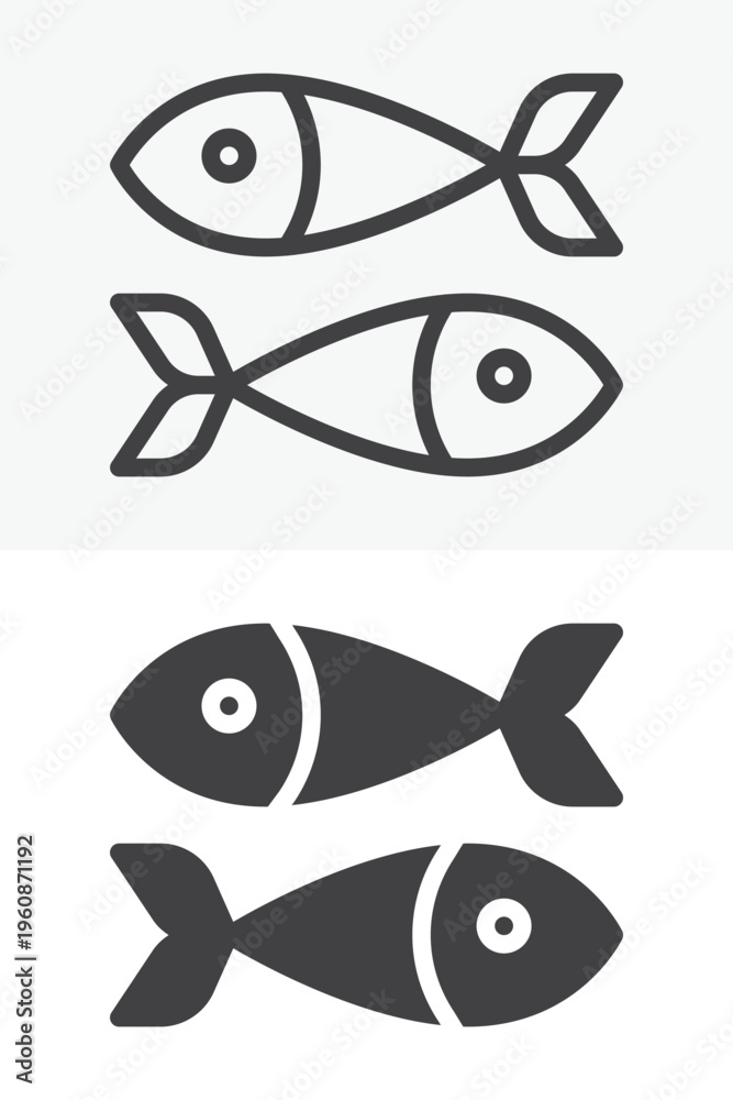 Fish food icon in line and solid style. Outline and solid vector icon with editable stroke. Seafood sign symbol, fish icon. #1960871192