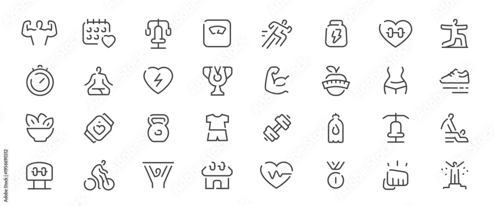 Fitness and sport line icons set. Gym and workout outline vector symbols collection #1956690312
