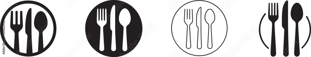 Flat cutlery icon set with fork, knife and spoon silhouettes for menu, logo and design. #1904652902