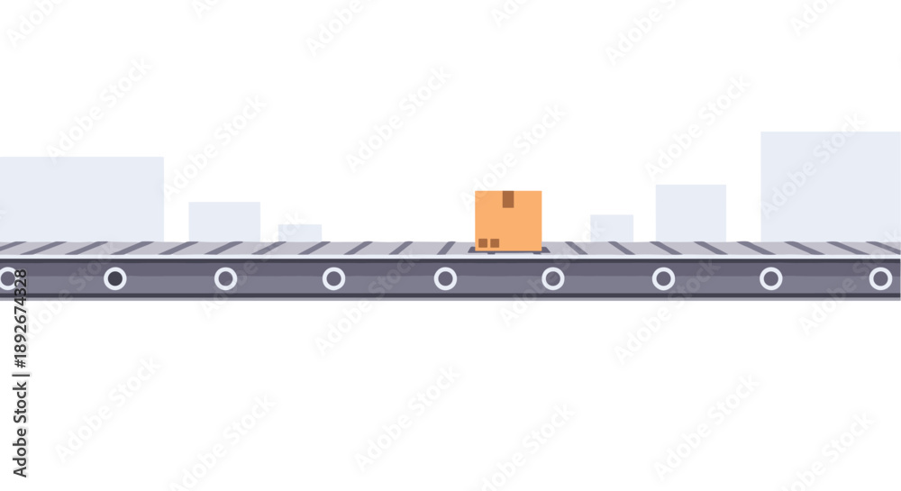 Flat design automated conveyor belt with moving box in modern warehouse #1892674328