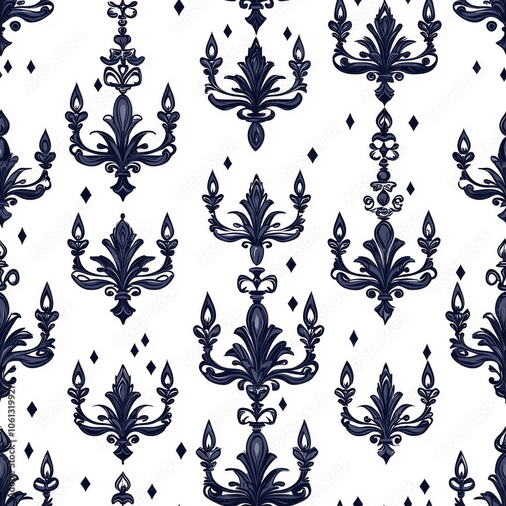 Flat style seamless pattern of chandelier lighting isolated on a white background. #1061319921