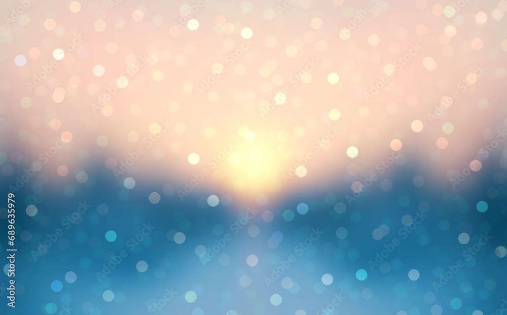 Flaying bokeh glittering in winter sunlight on snowy trees background. Winter holidays nature panorama. #689635979