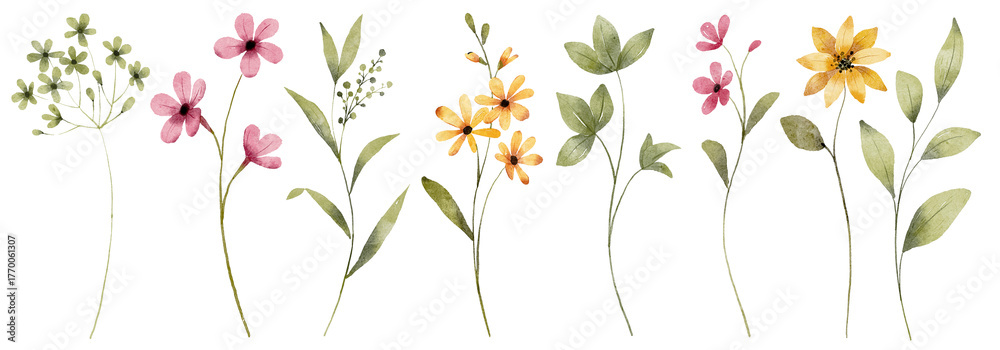 Flowers set, border, digital illustration, spring design, watercolor hand painting. Perfectly for printing, sublimation. #1770061307