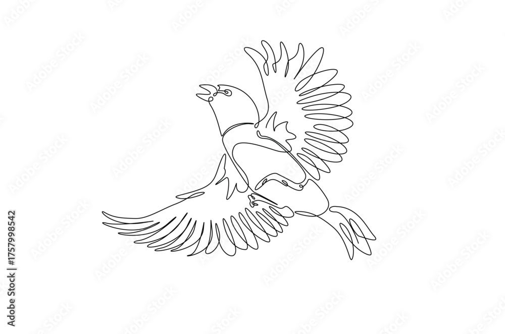Flying sparrow bird in continuous one line drawing. Single line art illustration of cute sparrow bird. Editable vector. #1757998542