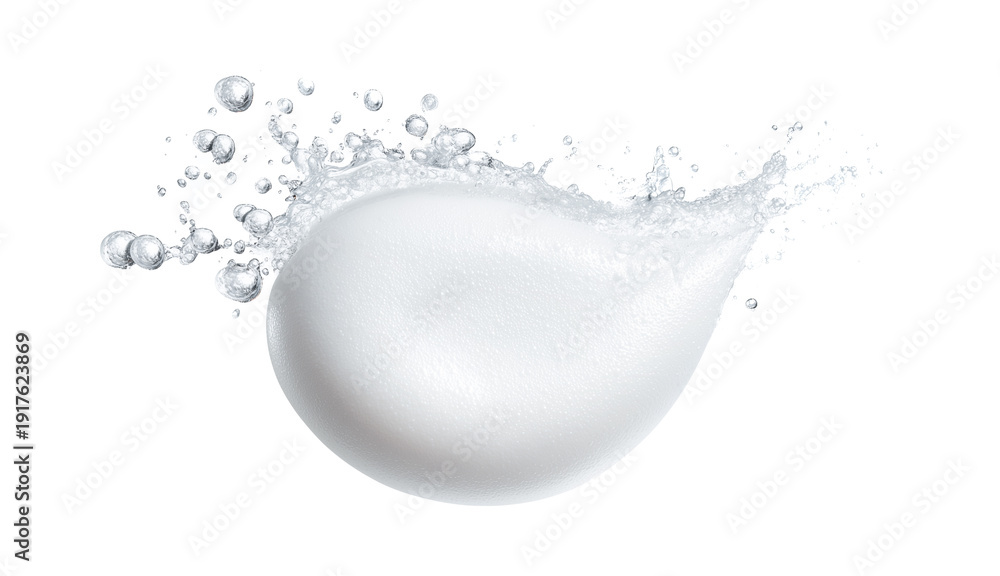 Foamy texture, mousse, cosmetic foam with splashes of water, sample for application #1917623869