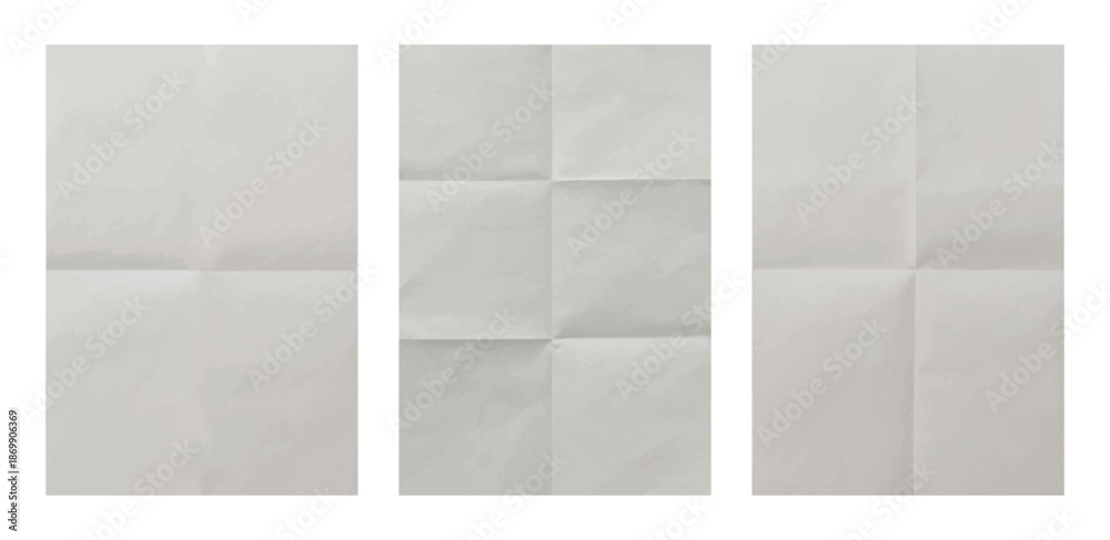 Folded white paper texture set, clean creased sheet background, minimal realistic mockup surface isolated for design #1869906369