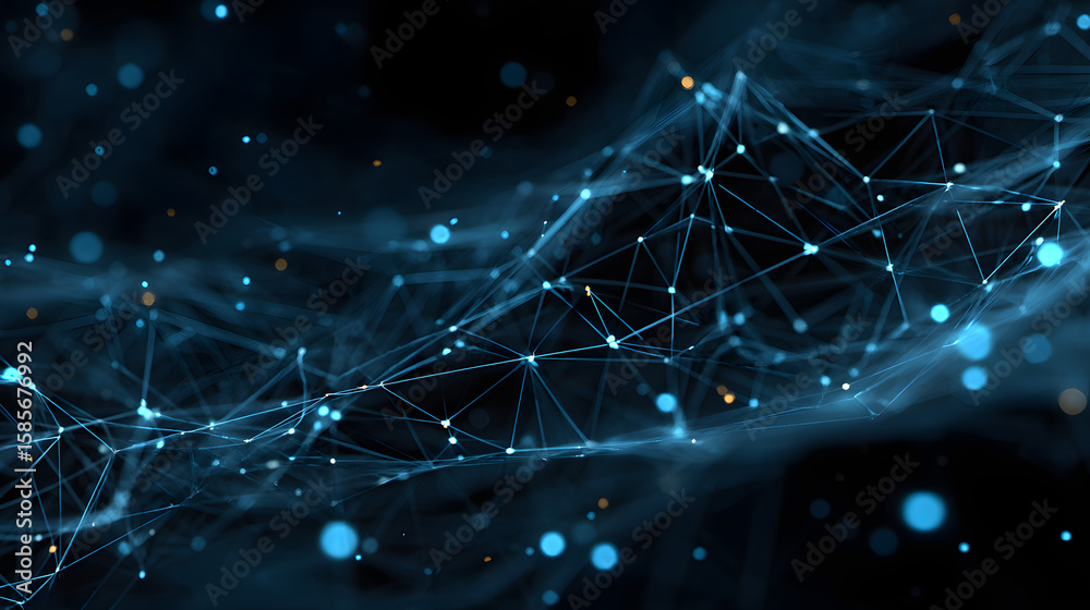 Fondo abstracto de tecnología y ciencia. Malla o red con líneas y formas geométricas detalle. #1585676992