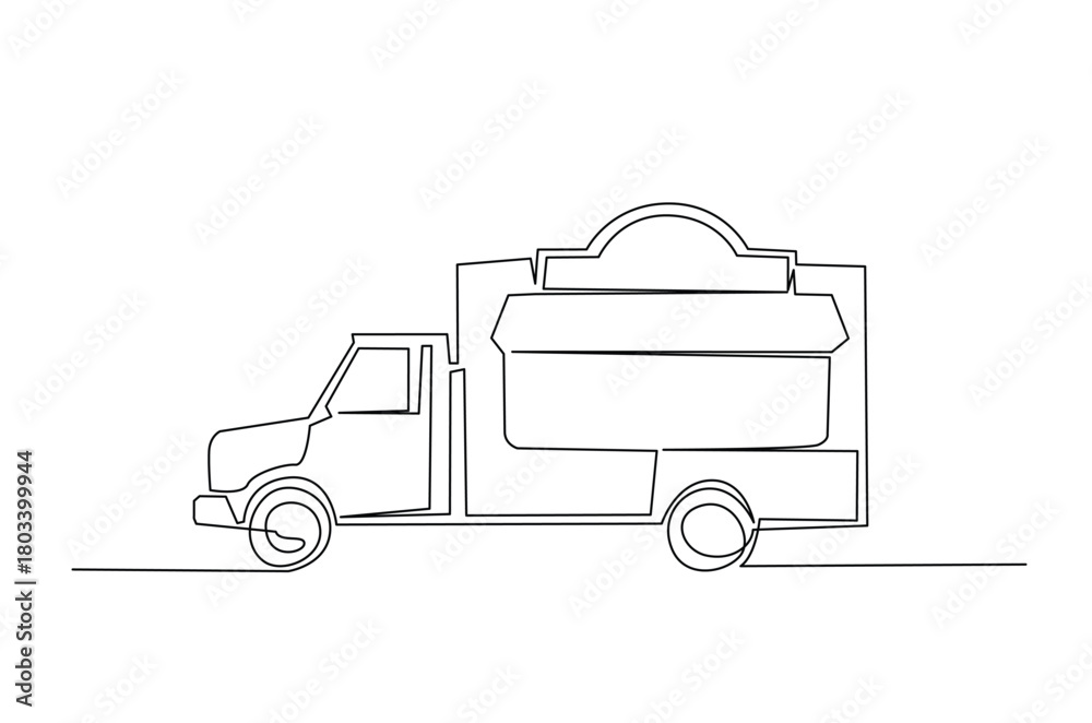 Food Truck Van in continuous one line drawing. Single line art illustration of Food Truck Car. Editable vector. #1803399944