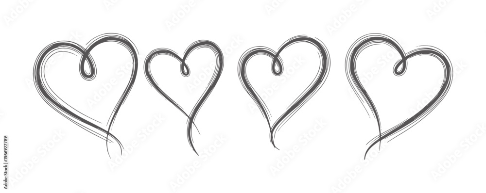 Four dark grey sketched hearts white love symbol brush #1966922789