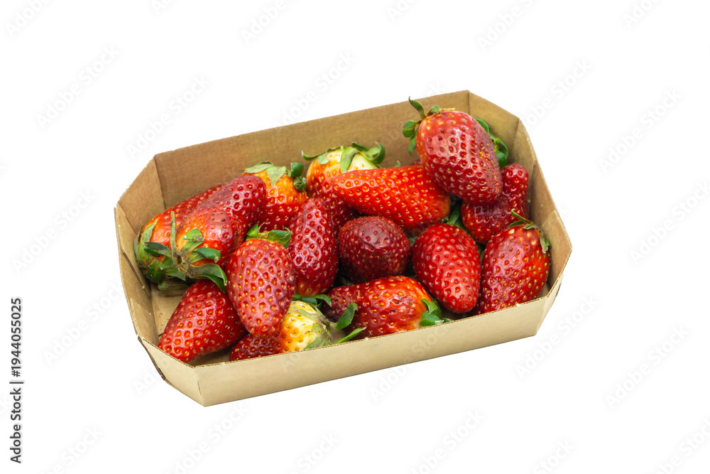 fresh red strawberries in cardboard punnet isolated on white background for food design #1944055025