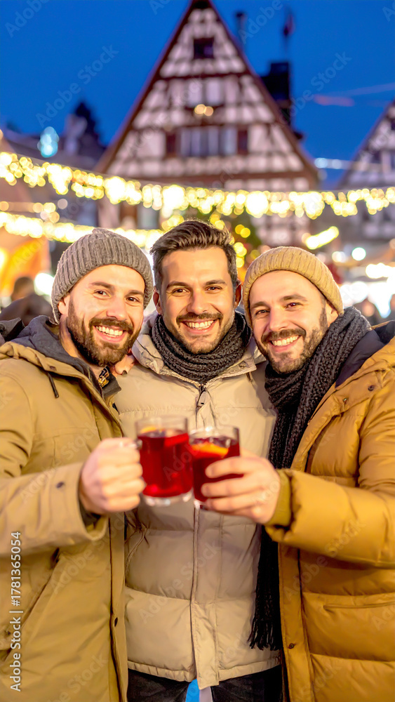 Freunde trinken Glühwein am Weihnachtsmarkt #1781365054