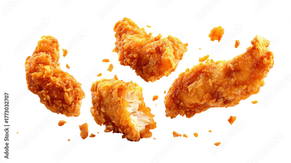 Fried chicken tenders flying isolated on a transparent background #1773032707