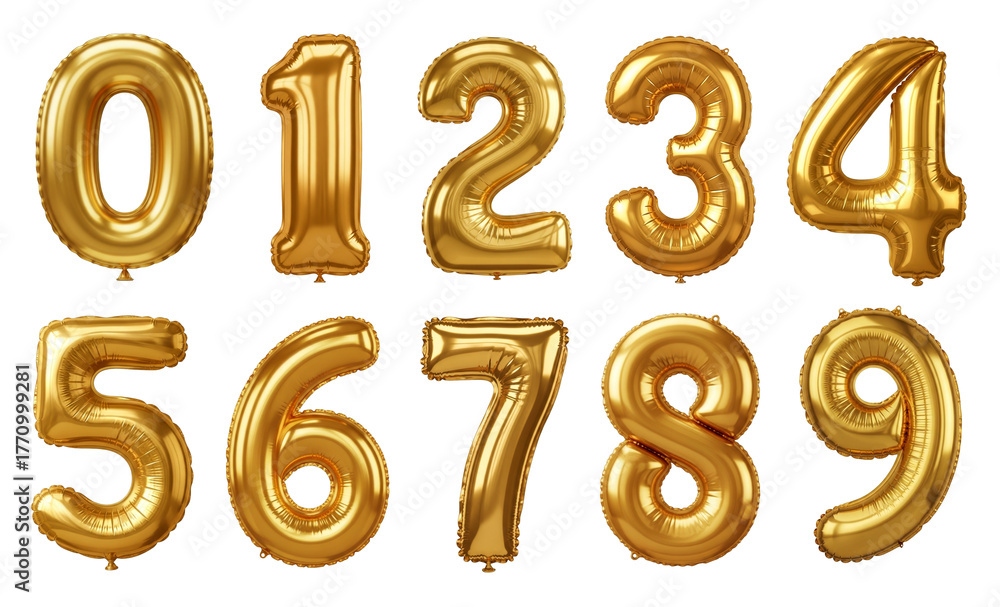 Full Set of Golden Shiny Mylar Number Balloons #1770999281
