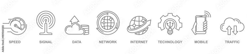 5G banner web icon vector illustration concept with icon of speed, signal, data, network, internet, technology, mobile and traffic #1859263583