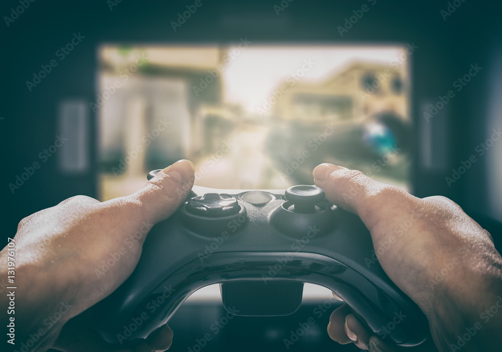 Gaming game play video on tv or monitor. Gamer concept. #131976107