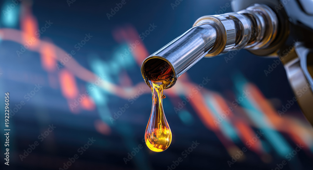 gasoline petroleum fuel nozzle with blurred background of oil price graph of the energy market business on a global industrial. #1922296056