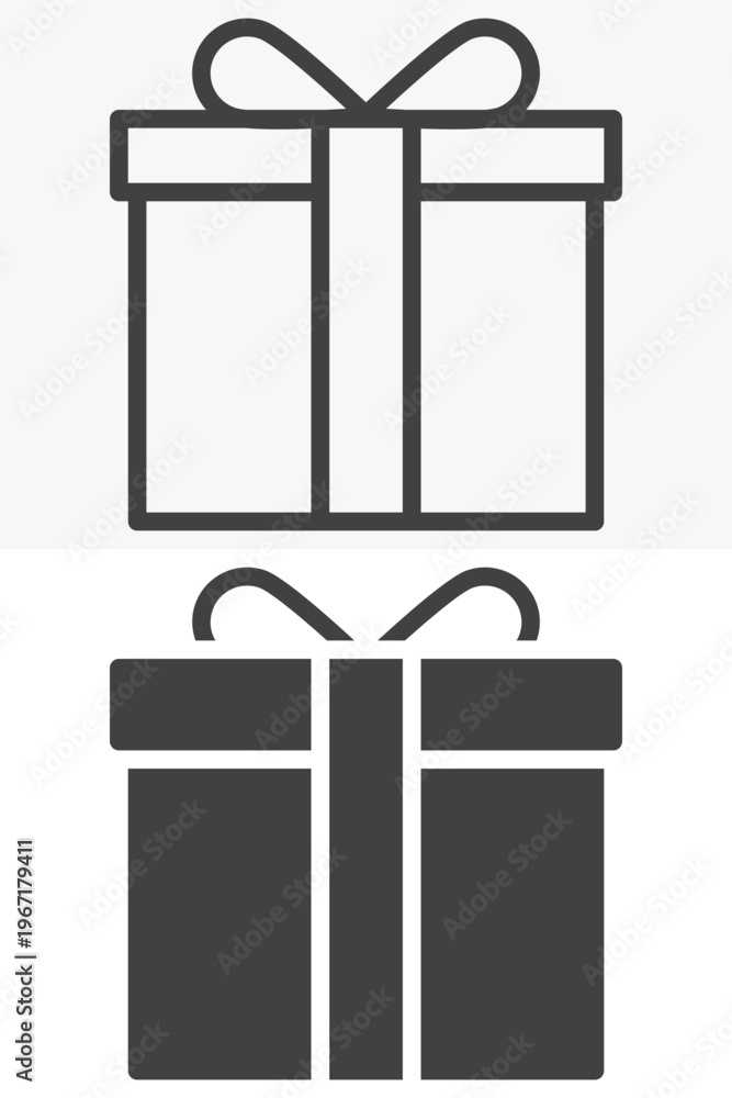 Gift box with ribbon bow icon in line and solid styles. Outline and solid icon, editable stroke vector sign symbol. Gift box icon for celebration and present design. #1967179411