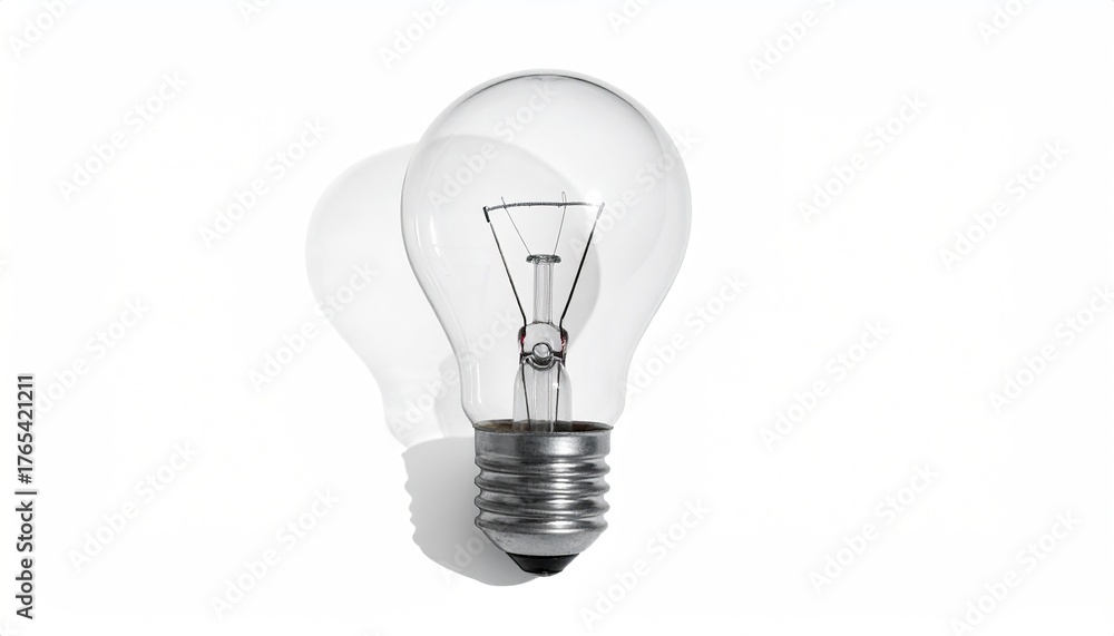 Glass bulb, shadow, on white. Filament. Simple object #1765421211