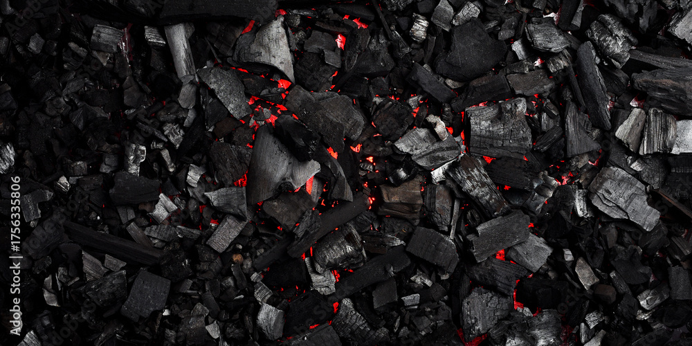 Glowing hot charcoal. Top view. Free space for text. #1756335806
