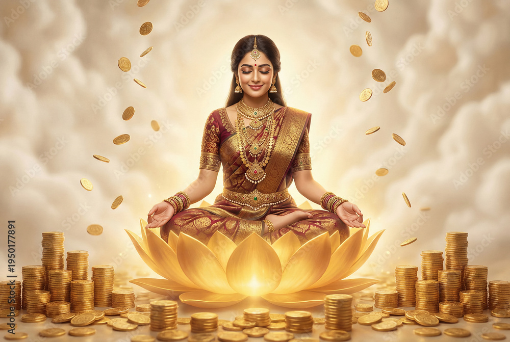 goddess lakshmi sitting on gold lotus on akshay tritiya festival #1950177891