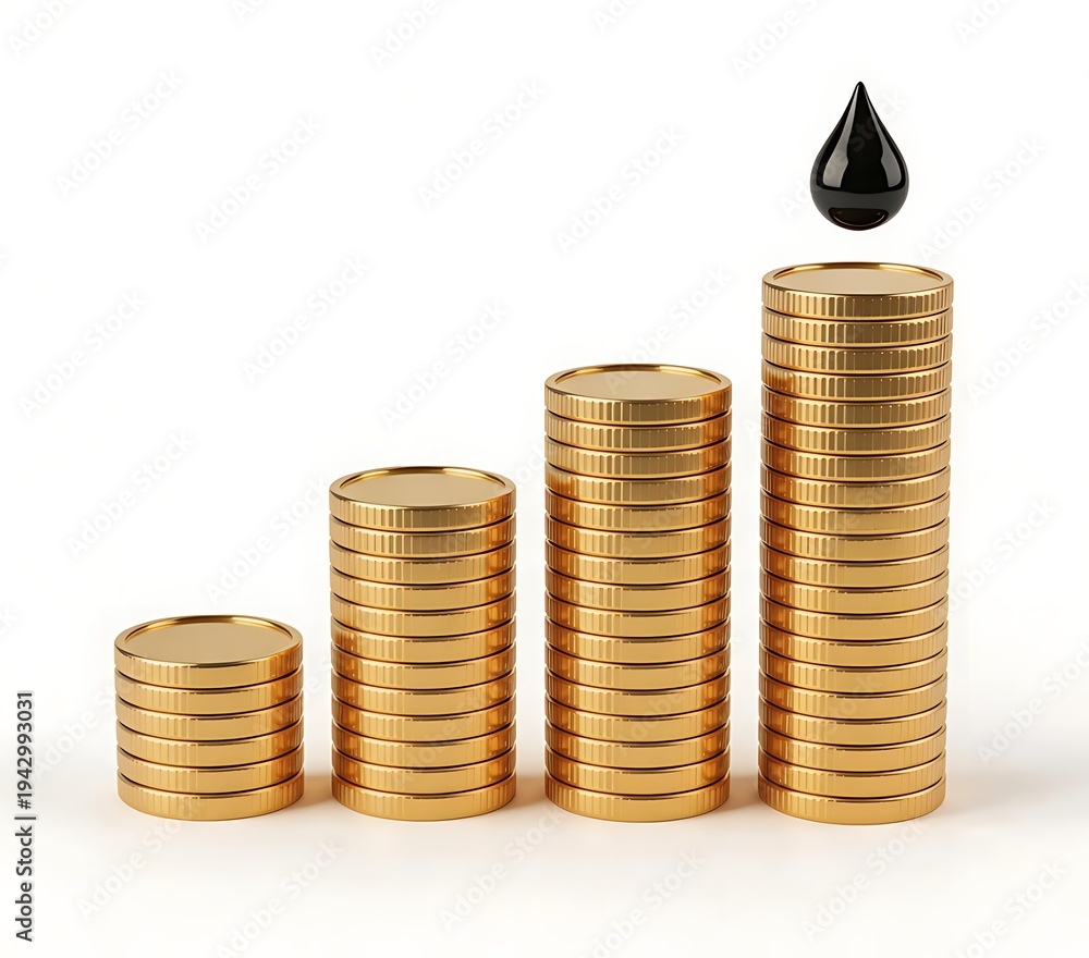 Gold Coin Stack Bar Chart and Floating Oil Drop Showing Energy Market Growth #1942993031