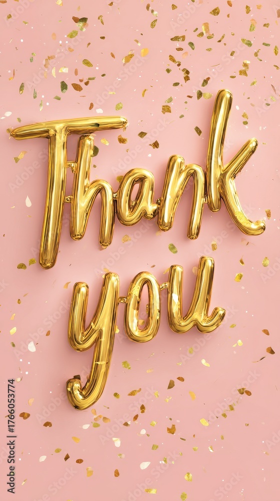 Gold Thank You Letters on Pink Background With Golden Confetti #1766053774