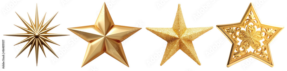 Golden decorative star ornaments png set #864819317