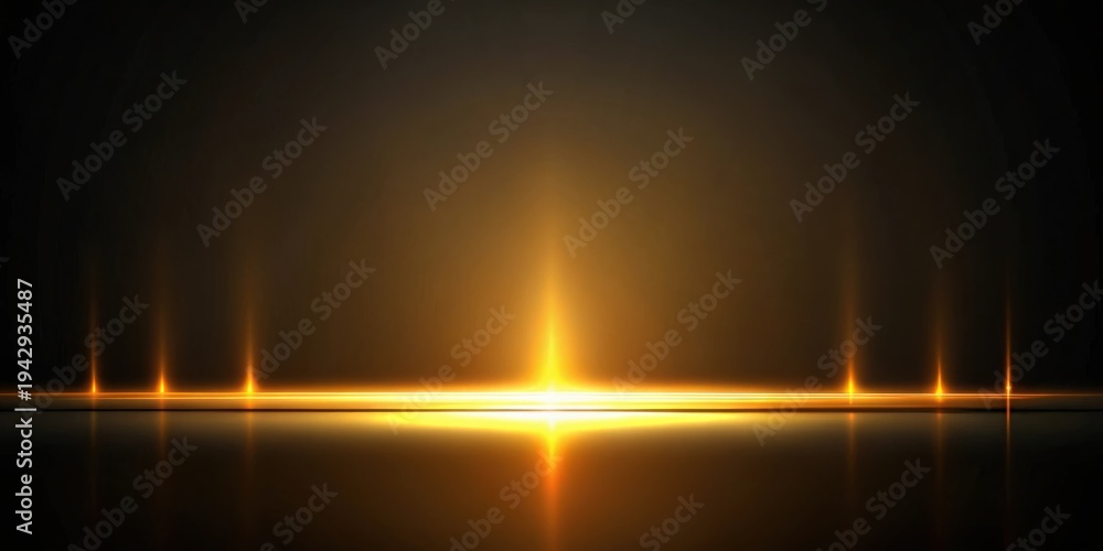 Golden Light Beams Reflecting on a Dark Surface, Creating a Dramatic and Elegant Visual #1942935487