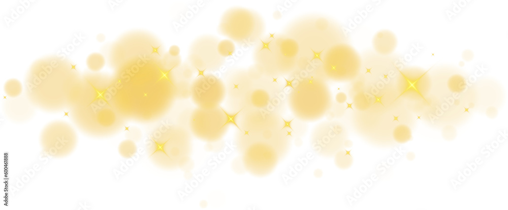Golden shining bokeh lights with glowing particles on transparent background. PNG. #600461888