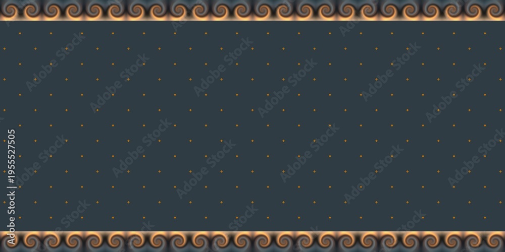 Golden swirl border decorated dark even empty wall 3d background. Speckled pattern wallpaper. #1955527505