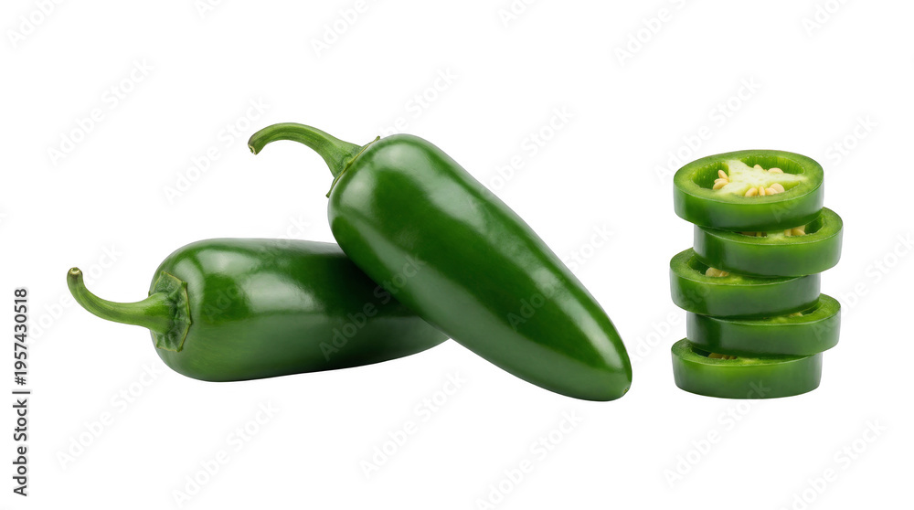 Green jalapeno peppers and sliced jalapeno rings #1957430518