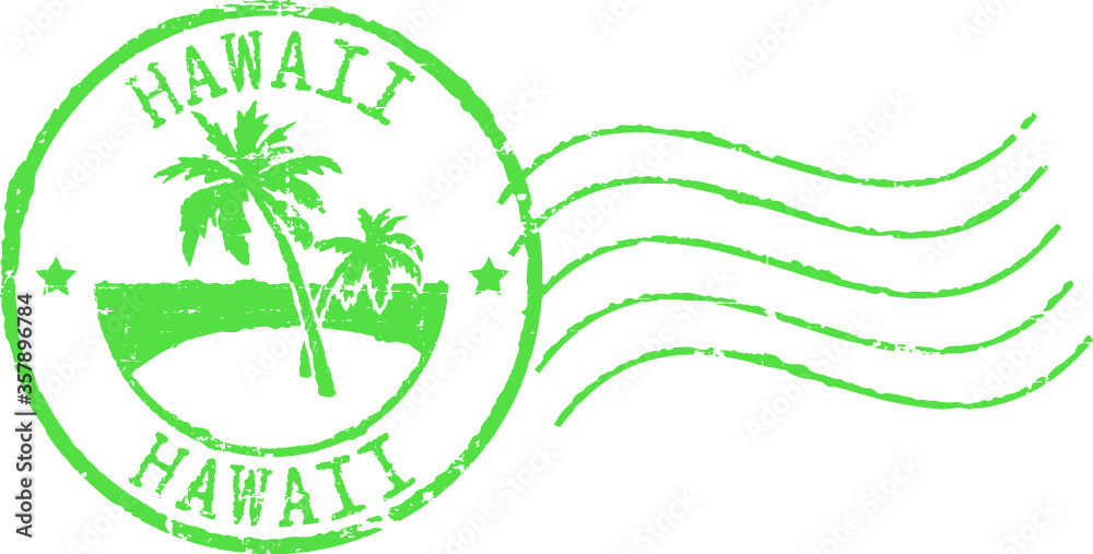 Green postal grunge stamp ''Hawaii'. #357896784
