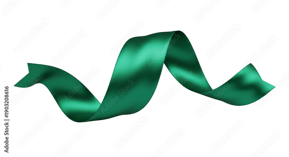 Green satin ribbon isolated on transparent background for decoration purposes #1903208616