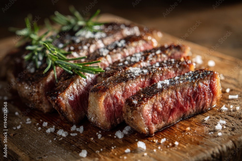 Grilled beef steak slices with rosemary and sea salt #1940212068