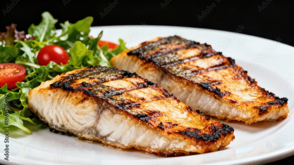 Grilled Salmon Fillets with Fresh Greens #1961575097