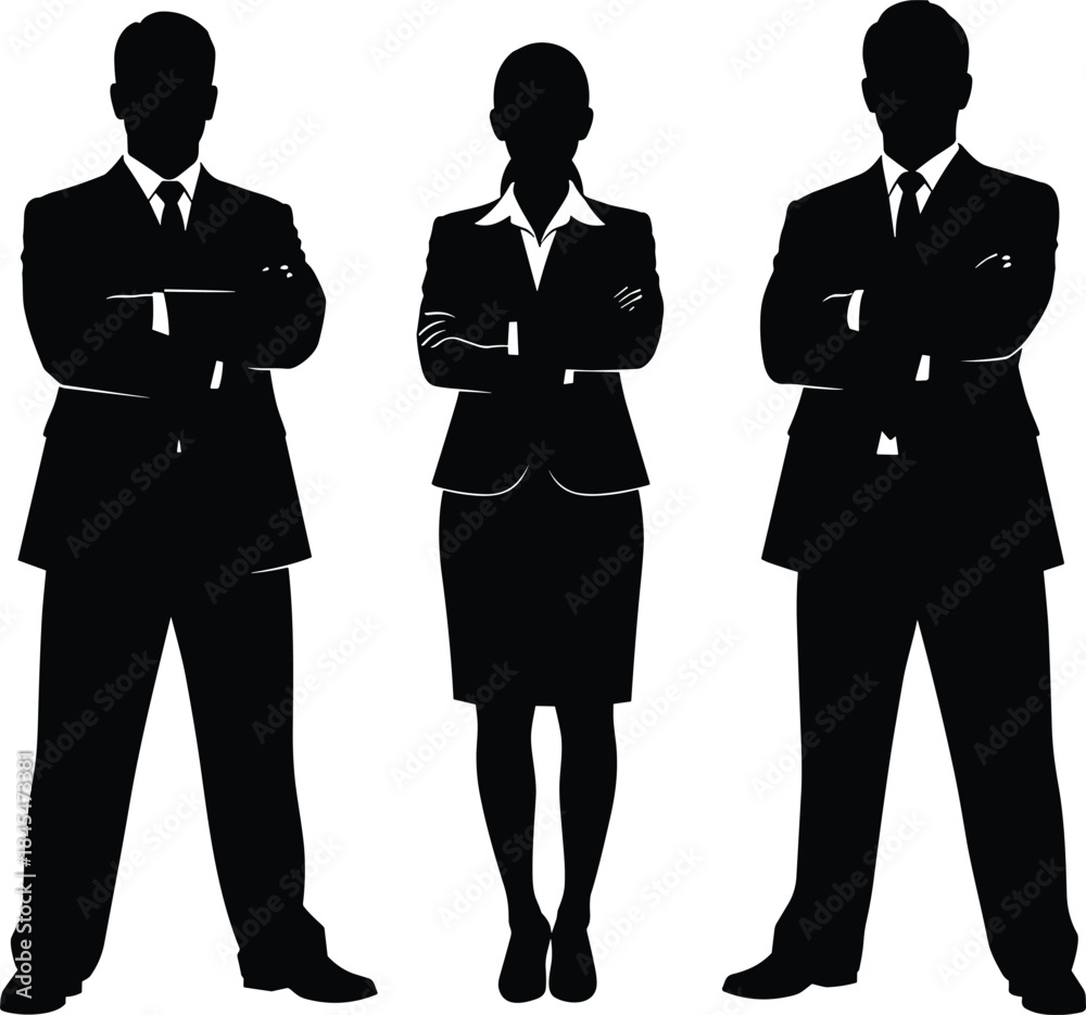 Group of business people silhouettes in formal suits with arms crossed standing together isolated on a white background #1845473381