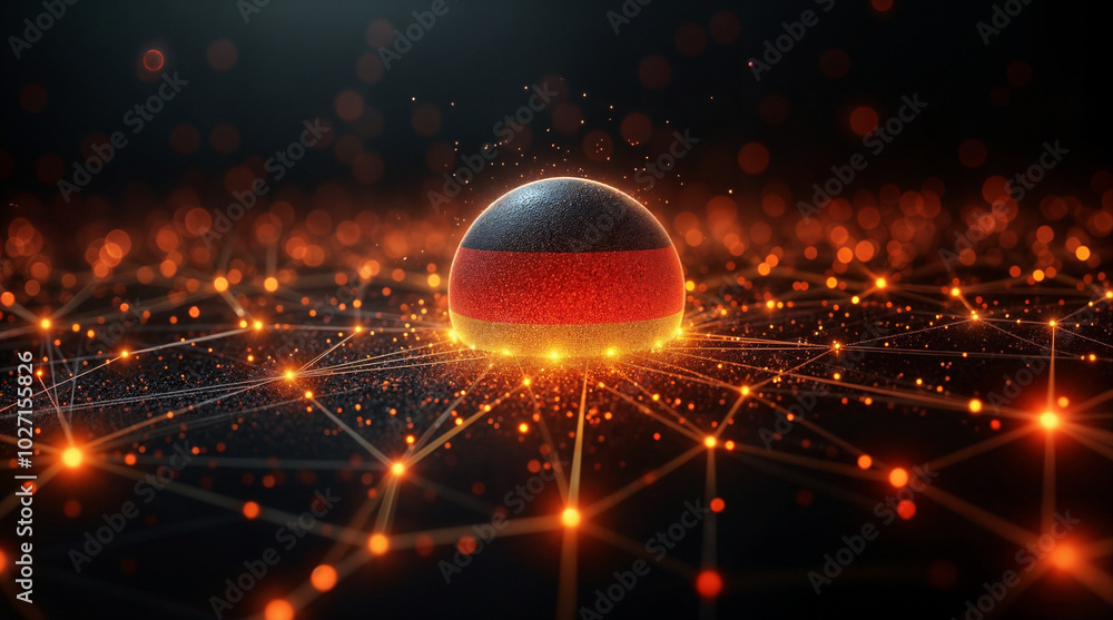 Half-sphere with German flag and glowing network connections, symbolizing digital innovation #1027155826